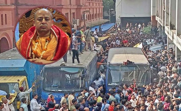 চট্টগ্রামে বাংলাদেশ সম্মিলিত সনাতনী জাগরণ জোটের মুখপাত্র ও ইসকন নেতা চিন্ময় কৃষ্ণ দাস ব্রহ্মচারীর জামিন নামঞ্জুরকে ঘিরে আদালতপাড়াসহ আশপাশের এলাকায় সংঘর্ষে পুলিশের ওপর হামলা এবং কাজে বাধাদানের মামলায় গ্রেফতার হওয়া ১২ আসামিকে জিজ্ঞাসাবাদের জন্য ছয় দিন করে রিমান্ড মঞ্জুর করেছেন আদালত।
