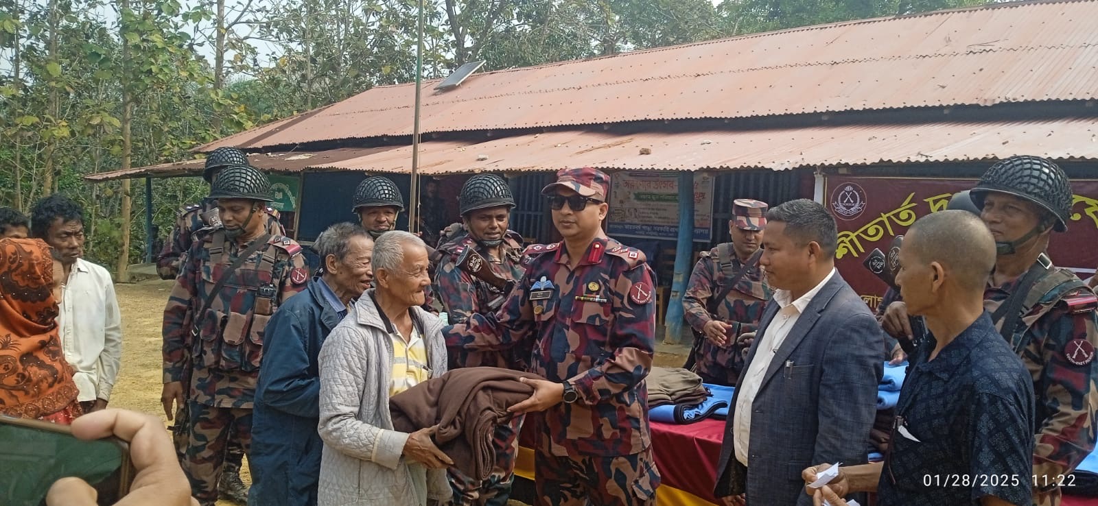 খাগড়াছড়ির পানছড়ি উপজেলার সীমান্তবর্তী ভারতবর্ষ পাড়া এলাকায় অসহায় ও হতদরিদ্র পরিবারের মাঝে শীতবস্ত্র ও শিক্ষা সহায়ক সামগ্রী বিতরণ করেন লোগাং জোন (৩ বিজিবি)।