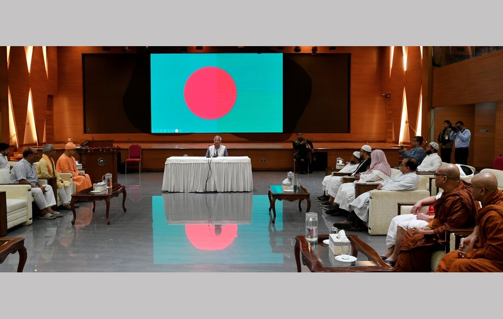 জাতীয় ঐক্য গঠনে আজ বিকেলে ফরেন সার্ভিস একাডেমিতে ধর্মীয় নেতাদের সঙ্গে প্রধান উপদেষ্টা অধ্যাপক ড. মুহাম্মদ ইউনূসের সংলাপ শুরু হয়েছে।