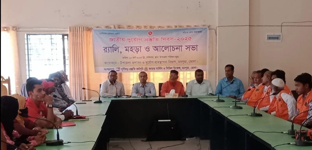 ভোলার মনপুরায় জাতীয় দুর্যোগ প্রস্তুতি দিবস পালিত হয়েছে। এই উপলক্ষে র্যালি, মহড়া ও আলোচনা সভাসহ বিভিন্ন কর্মসূচী গ্রহন করা হয়। উপজেলা প্রশাসন ও দুর্যোগ ব্যবস্থাপনা বিভাগের উদ্যোগে এই আয়োজন করা হয়।