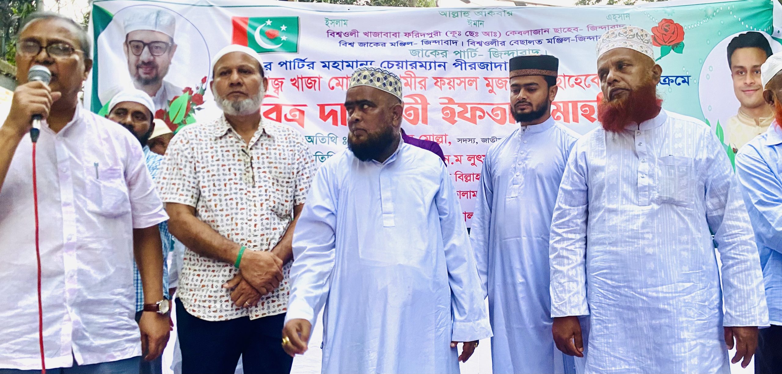 জাকের পার্টির চেয়ারম্যান পীরজাদা আলহাজ খাজা মোস্তফা আমীর ফয়সল মুজাদ্দেদী ছাহেবের নির্দেশক্রমে পবিত্র দাওয়াতীইফতার মাহফিল অনুষ্ঠিত হয়েছে ।