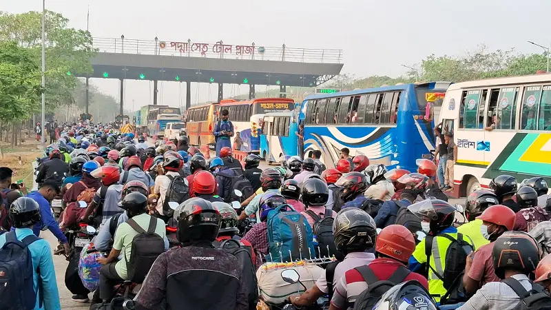 শুক্রবার থেকে শুরু হয়েছে ঈদের ছুটি। রাজধানী ঢাকা ছাড়তে শুরু করেছে বিভিন্ন পেশার মানুষ। দেশের দক্ষিণবঙ্গের প্রবেশদ্বার মুন্সীগঞ্জের লৌহজং উপজেলার পদ্মা সেতুতে ঈদের ছুটি শুরু হওয়ার দিন সকাল থেকেই ভিড় বেড়েছে টোল প্লাজা এলাকায়। একদিনে টোল আদায় হয়েছে ৩ কোটি ৭ লাখ ৬৭ হাজার ৮৫০ টাকা।