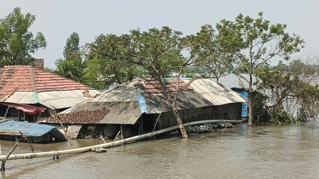 খোলপেটুয়া নদীর বেড়িবাঁধ ভাঙনের পর সাতক্ষীরার আশাশুনি উপজেলার প্লাবিত গ্রামগুলোতে পরিস্থিতি আরও ভয়াবহ রূপ নিয়েছে।