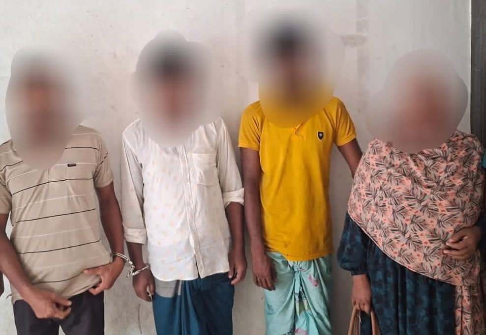 ১১-০৯-২০২৫ ইং অনুমান রাত ২ টা ৫ মিনিটের সময় অভিযান পরিচালনা করে চার জনকে গ্রেফতার করা হয়েছে।